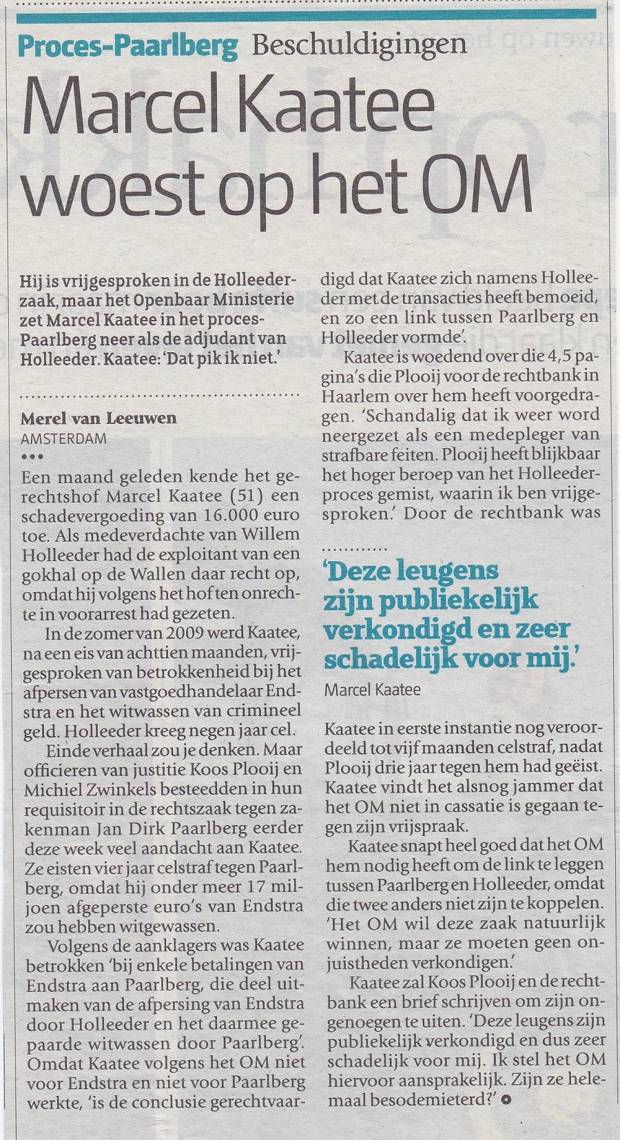 “In het dossier hebben wij gezien dat mensen bij Holleeder in de tang zijn geraakt, waarvan een behoorlijk aantal het niet meer kan navertellen. Mogelijk is dat bij u ook het geval geweest meneer Kaatee, en heeft u onder dwang moeten meewerken aan de praktijken van Holleeder. Als dat het geval is geweest, staat de deur voor u op een kier en zijn wij bereid hierover het gesprek met u aan te gaan. Zo niet, dan gaan we u opnieuw vervolgen.”
